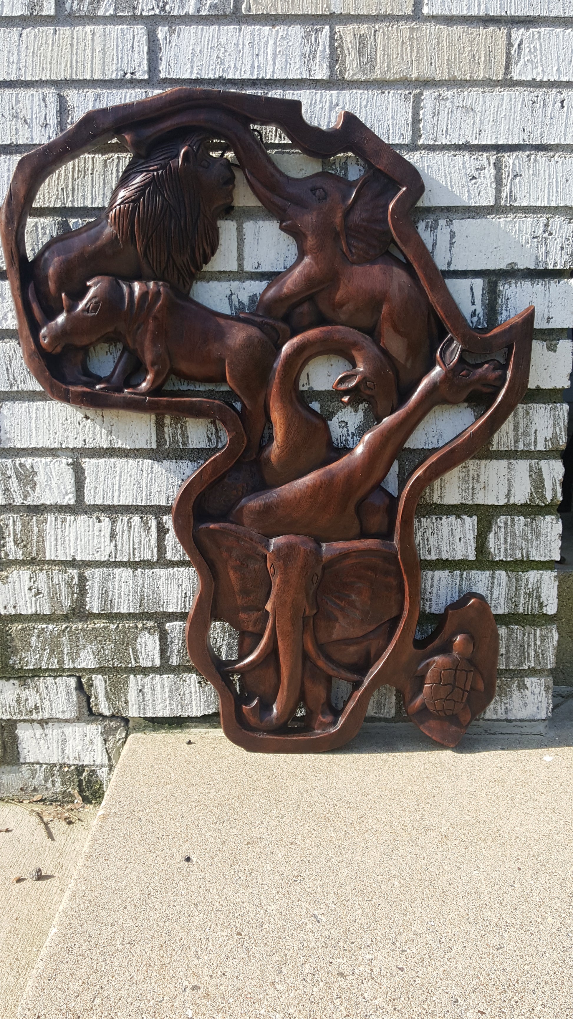 Handmade solid wood carved, Africa Outlining Safari Animals