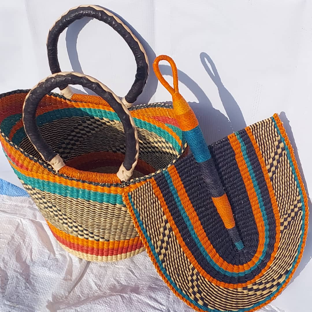 Beautifully handmade baskets, planters, purses and plates fashioned from elephant grass in Northern Ghana.